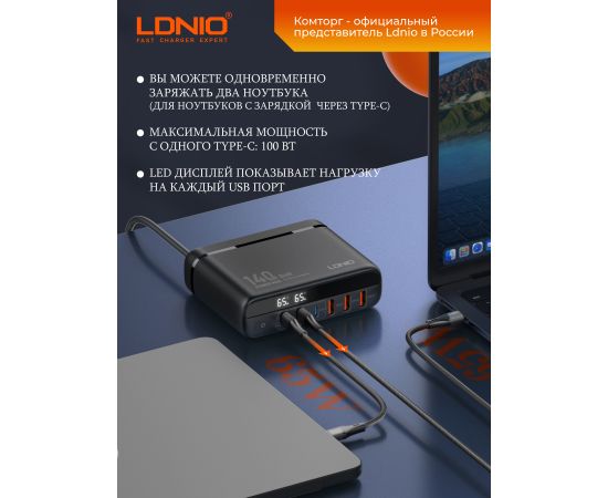 Сетевое зарядное устройство LDNIO A6140C 140W - это мощная и быстрая зарядка для мобильных устройств и ноутбуков.