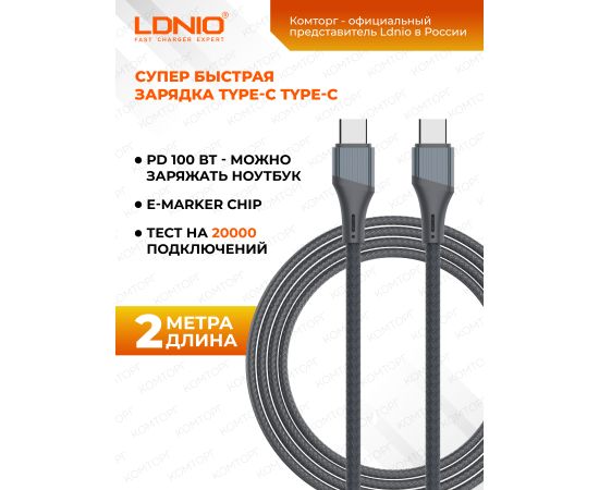 Кабель LDNIO LC632C-100W/ USB PD: Type-C--Type-C/ 2m/ 100W High power/ E-marker chip/серый