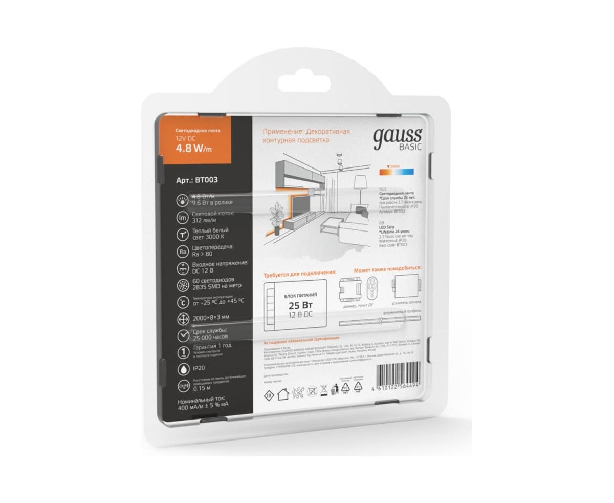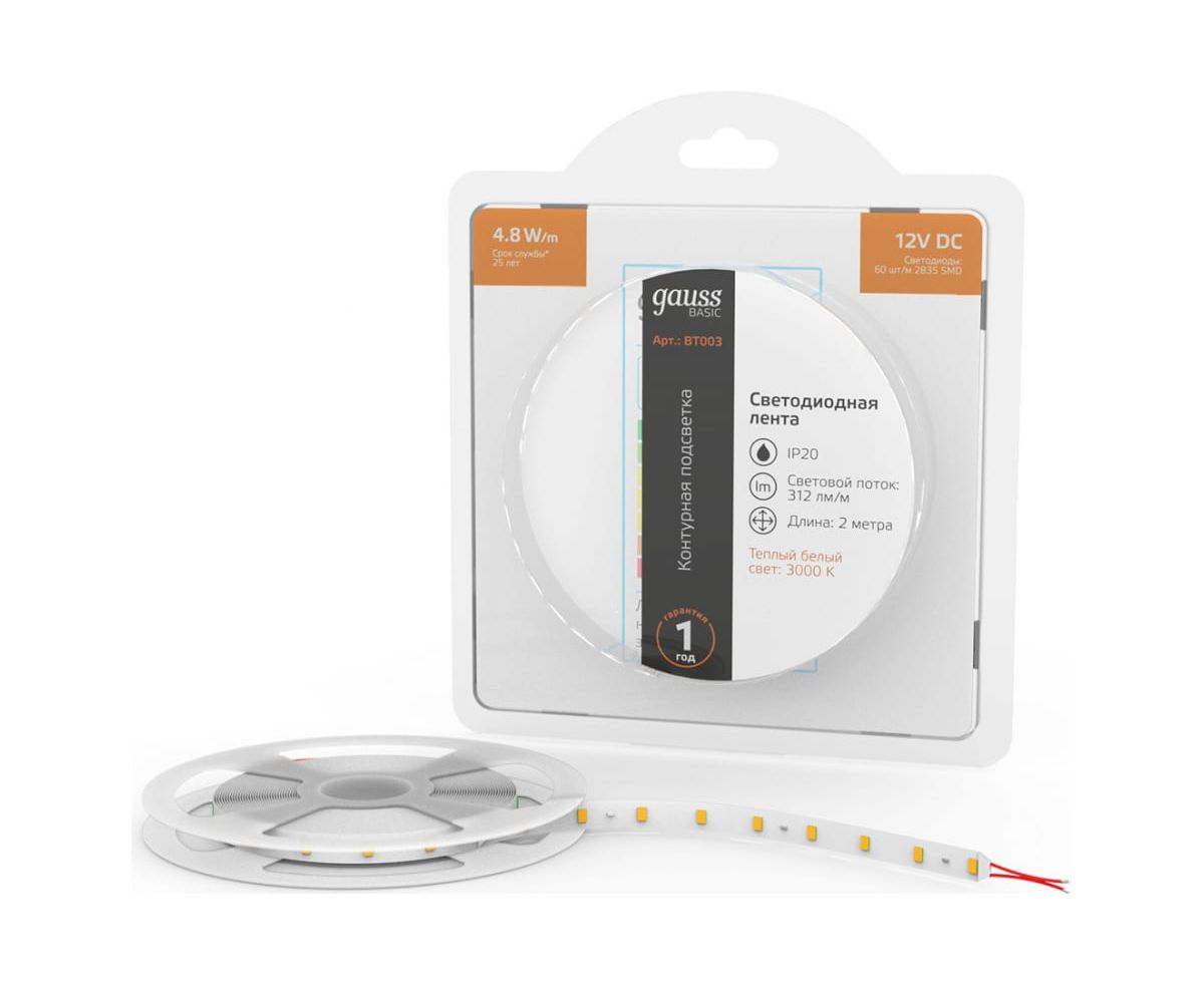 Лента светодиодная Gauss Basic BT003 2м