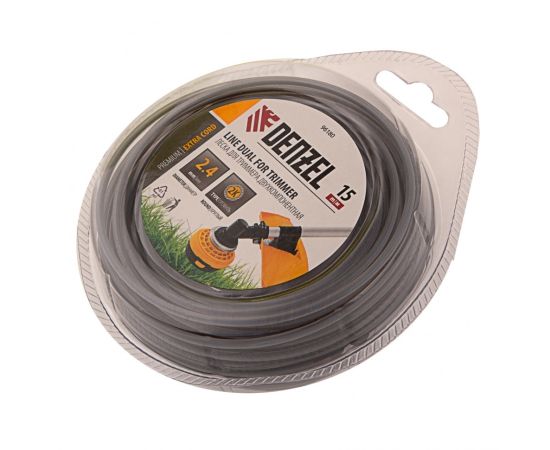 Леска для триммера DENZEL двухкомпонентная круглая 2,4мм х 15м, Extra cord 96180