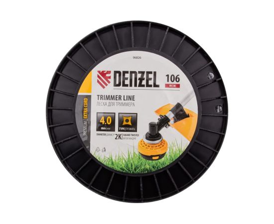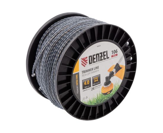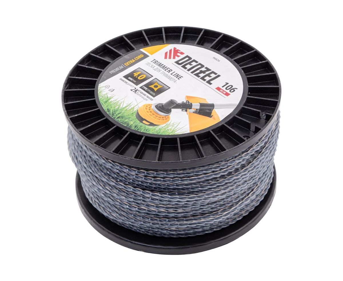 Леска для триммера Denzel Extra Cord 96826 двухкомпонентная витой квадрат, 4,0ммх106м, на DIN катушке