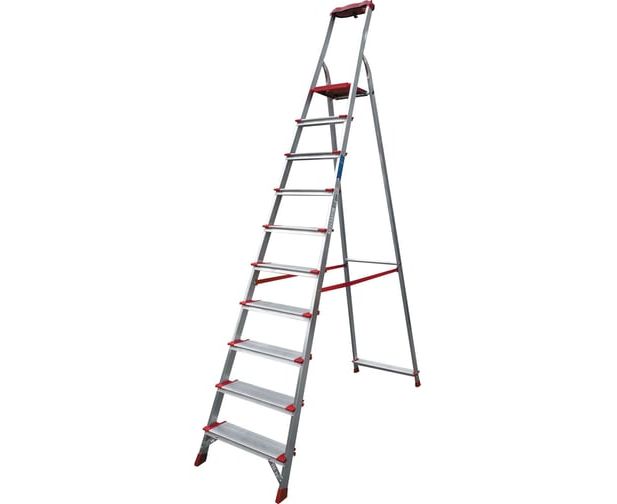 Профессиональная стремянка Новая Высота NV3118, 1x10 ступеней 130 мм, органайзер 3118110 предназначена для интенсивного использования.