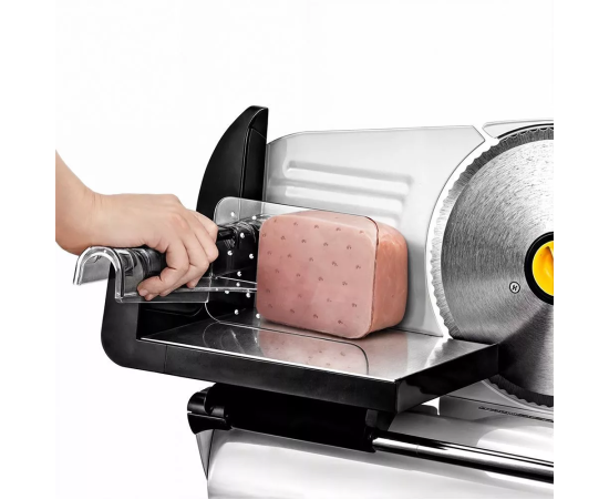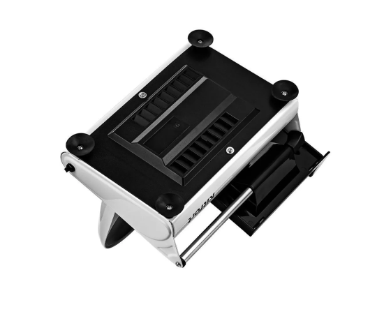 В данном приборе предусмотрены ножки на присосках, чтобы сделать его более устойчивым. Это обеспечивает безопасность использования и предотвращает случайное смещение или скольжение ломтерезки во время работы.