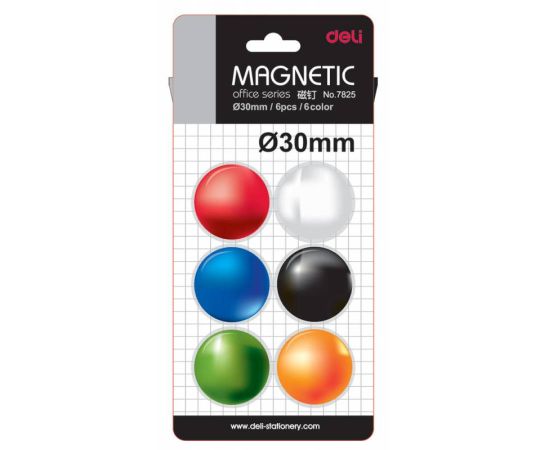 Магнит для досок Deli E7825 ассорти d30мм круглый (6шт)