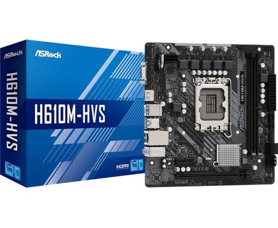 MB s1700 ASRock H610M-HVS, Intel®H610, 2xDDR4-3200, D-SUB+HDMI, 1xPCI-Ex16, 1xPCI-Ex1, 4xSATA3, 8 Ch Audio, 1xGLan, (4+2)xUSB2.0, (2+2)xUSB3.2, 1xPS/2, mATX, RTL