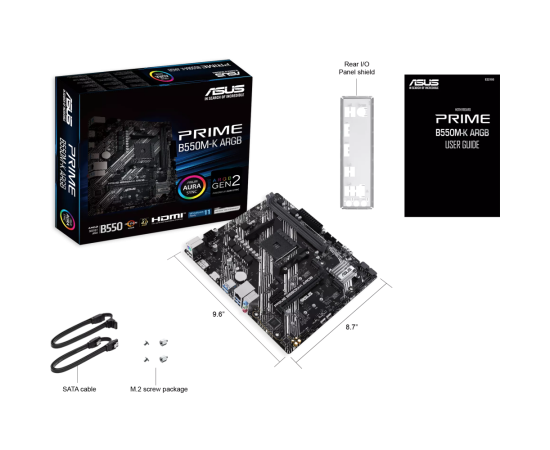 MB sAM4 ASUS PRIME B550M-K ARGB, AMD B550, 2xDDR4-3200 МГц, 1xPCI-Ex16, 2xM.2, Micro-ATX