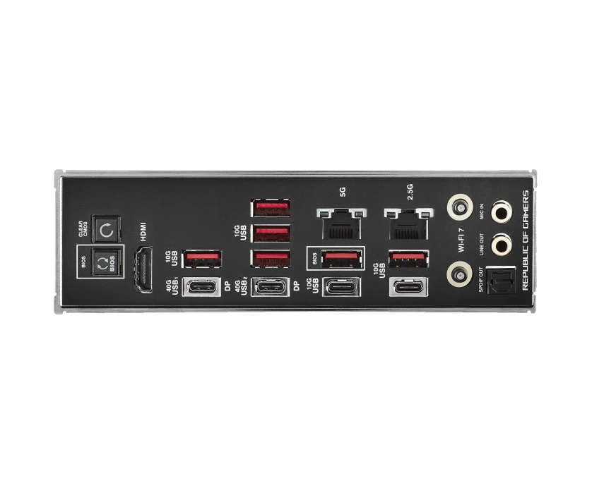 6 x USB 3.2 Gen2, 2 x USB 3.2 Gen2 Type-C, 2 x USB 4 Type-C, HDMI, 2 x RJ-45, S/PDIF (оптический)