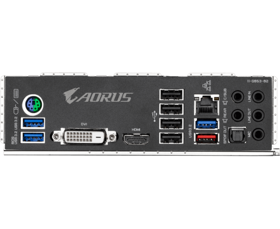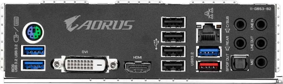 Разъёмы на задней панели : PS/2, 4 x USB 2.0, 3 x USB 3.2 Gen1, USB 3.2 Gen2, DVI, HDMI, RJ-45, S/PDIF (оптический)