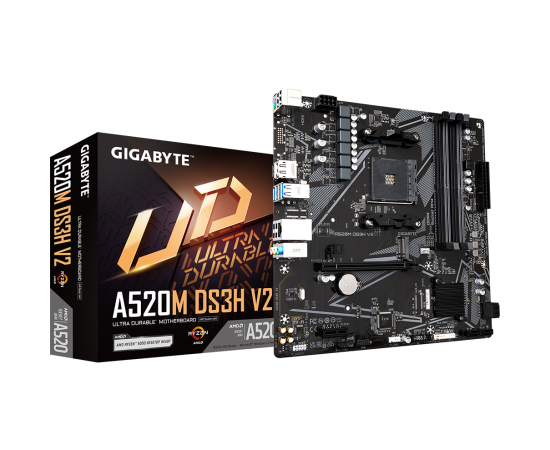 MB sAM4 Gigabyte A520M DS3H V2, Socket AM4, AMD A520, 4xDDR4-3200, HDMI+DP, 1xPCI-Ex16, 1xPCI-Ex1, 4xSATA3(RAID 0/1/10), 1xM.2, 8 Ch Audio, GLan, (4+2)xUSB2.0, (4+2)xU