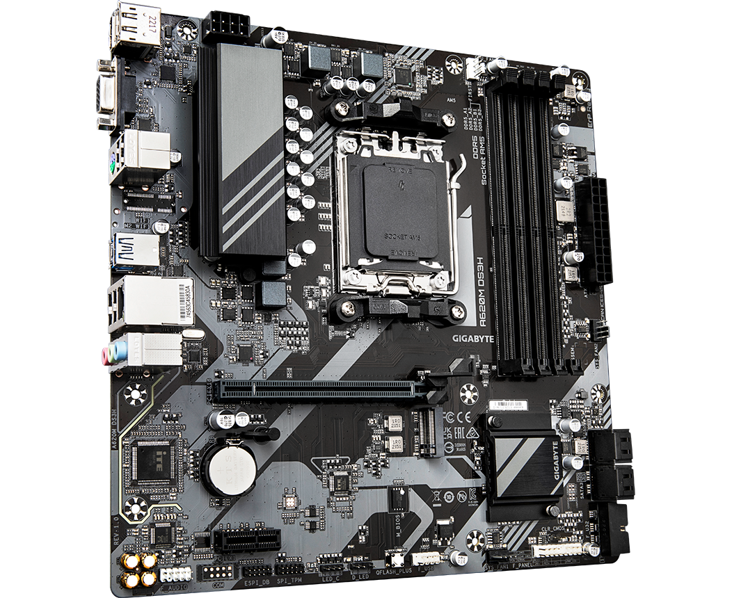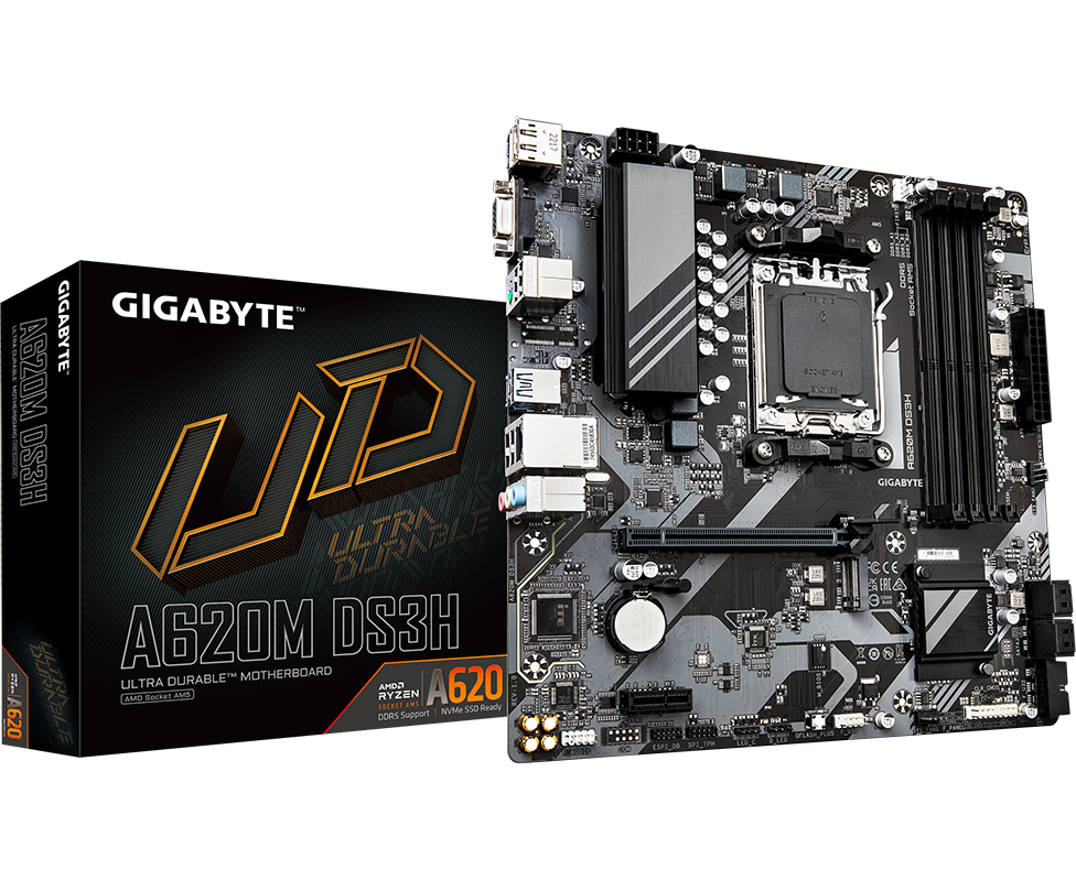 MB sAM5 Gigabyte A620M DS3H, AMD A620, 4xDDR5-5200 МГц, 1xPCI-Ex16, 1xM.2, Micro-ATX