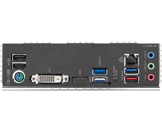 Разъёмы на задней панели : PS/2, 2 x USB 2.0, 3 x USB 3.2 Gen1, USB 3.2 Gen2, DVI, HDMI, RJ-45