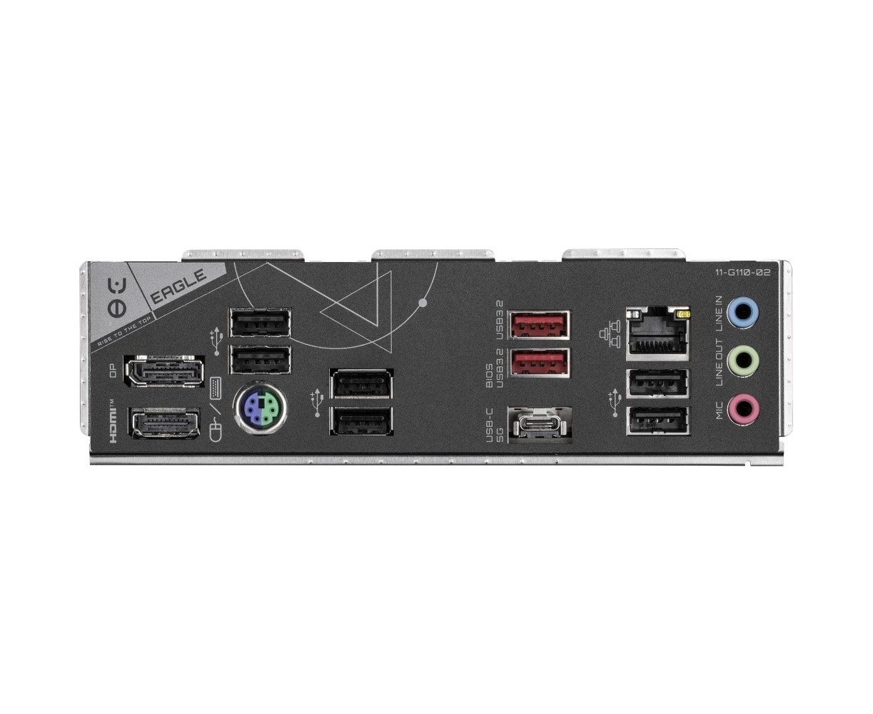 PS/2, 6 x USB 2.0, USB 3.2 Gen1 Type-C, 2 x USB 3.2 Gen2, HDMI, DisplayPort, RJ-45