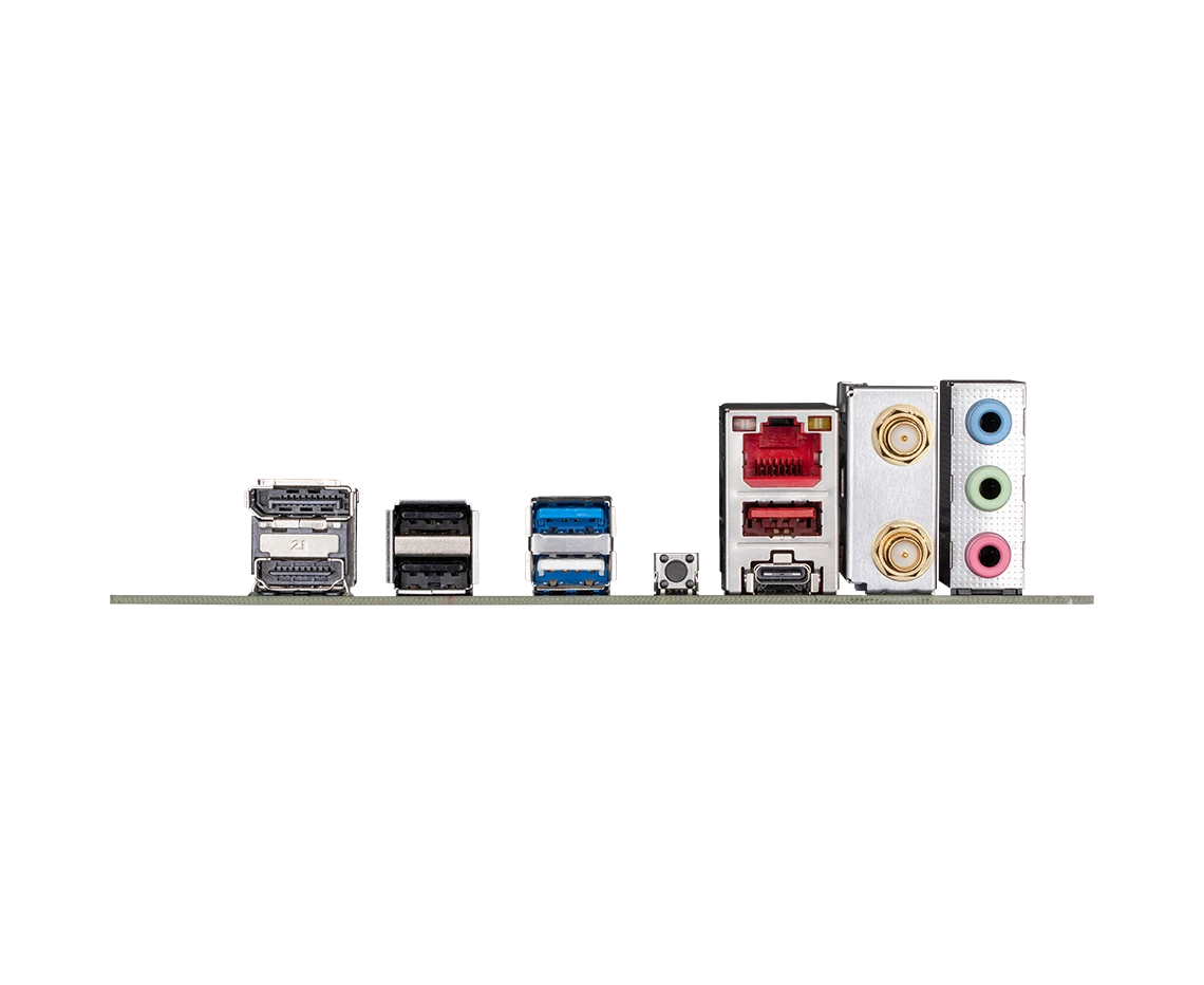 3 x USB 2.0, USB 3.2 Gen1, USB 3.2 Gen1 Type-C, USB 3.2 Gen2, HDMI, DisplayPort, RJ-45