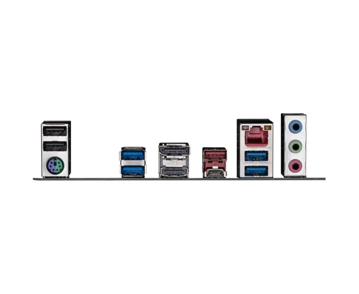 PS/2, 2 x USB 2.0, 4 x USB 3.2 Gen1, USB 3.2 Gen2, USB 3.2 Gen2 Type-C, HDMI, DisplayPort, RJ-45