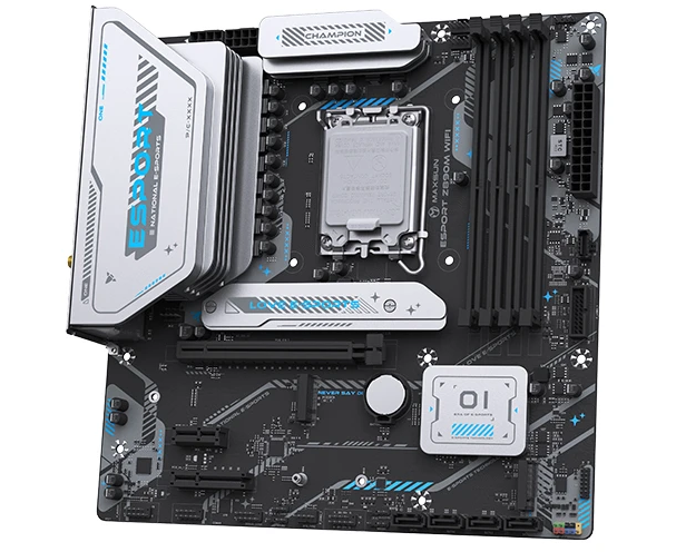 Материнская плата MAXSUN MS-eSport Z890M Wifi, LGA1851, Z890, 4*DDR5, 4*SATA3, 3*M.2, USB 3.2, USB 2.0, Type-C, 1*PCIEx16, 1*PCIex4, 1*PCIex1, HDMI+DP