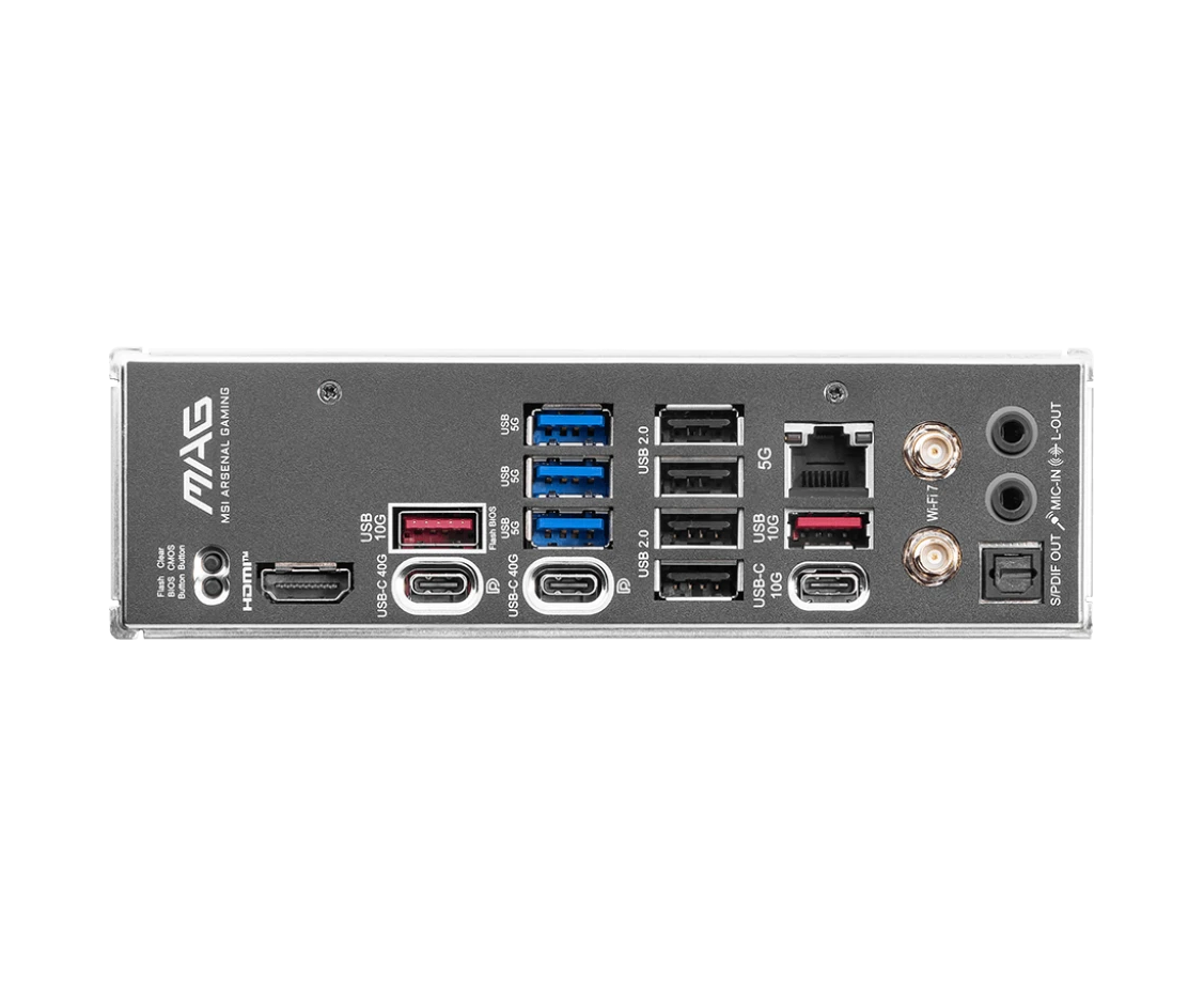 4 x USB 2.0, 3 x USB 3.2 Gen1, USB 3.2 Gen2, USB 3.2 Gen2 Type-C, 2 x USB 4 Type-C, HDMI, RJ-45, S/PDIF (оптический)