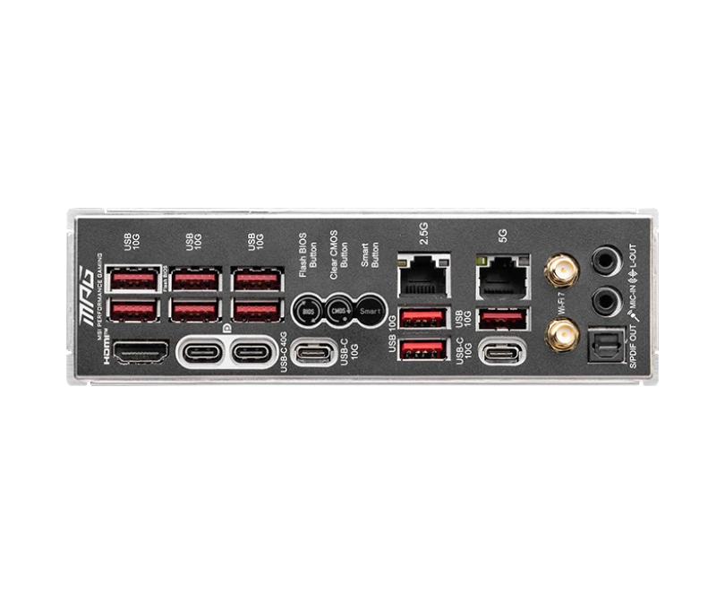 9 x USB 3.2 Gen2, 2 x USB 3.2 Gen2 Type-C, 2 x USB 4 Type-C, HDMI, 2 x RJ-45, S/PDIF (оптический)