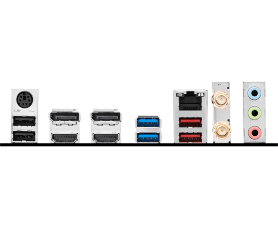 PS/2, 2 x USB 2.0, 2 x USB 3.2 Gen1, 2 x USB 3.2 Gen2, 2 x HDMI, 2 x DisplayPort, RJ-45