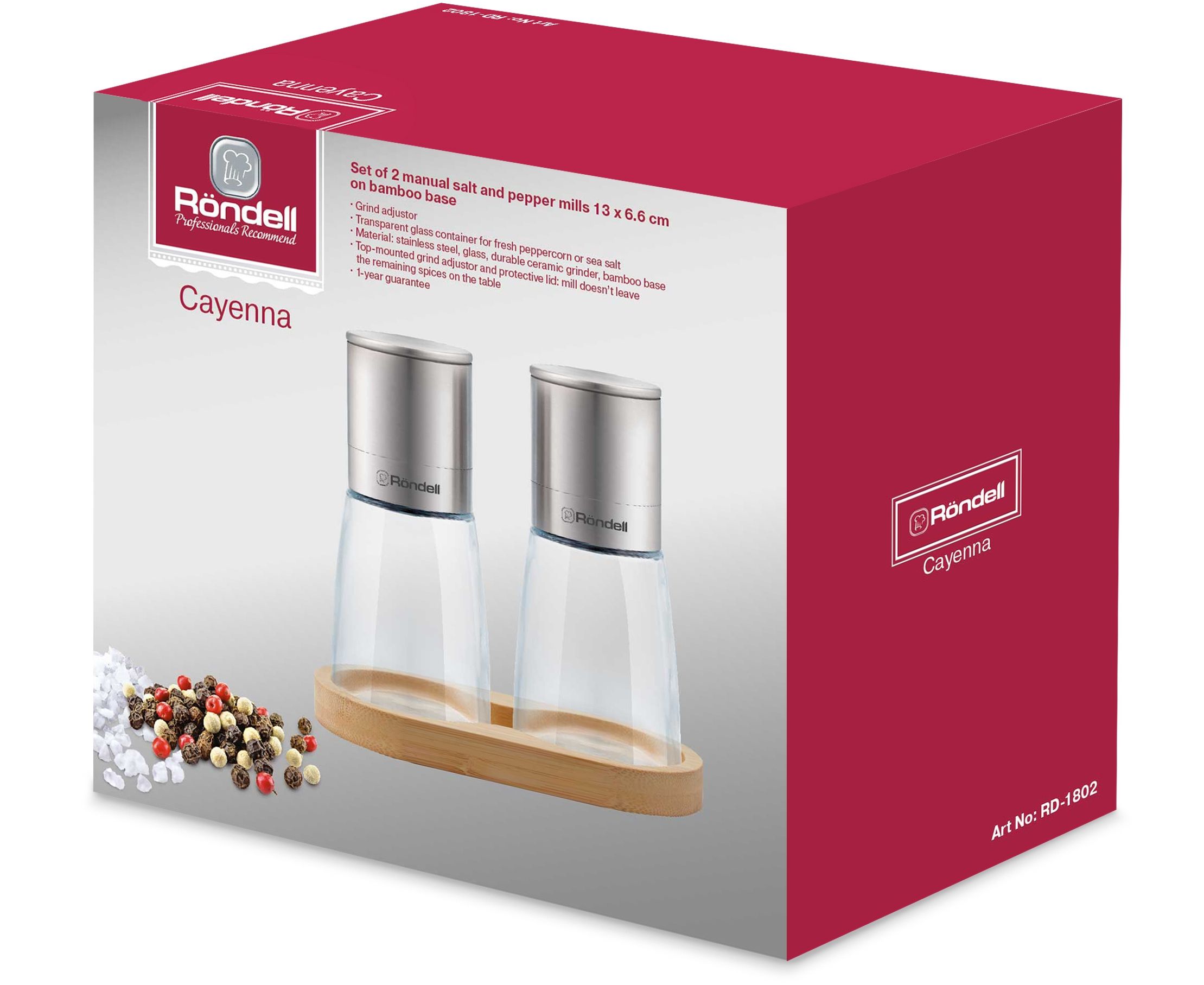 Мельница для перца/соли Rondell Cayenna RD-1802 стальной