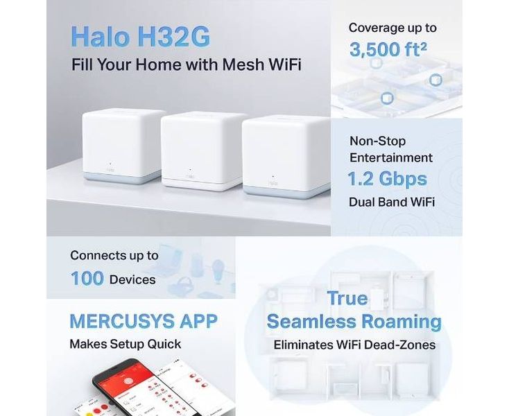 Домашняя Mesh Wi-Fi система Mercusys Halo H32G (3-pack) AC1200