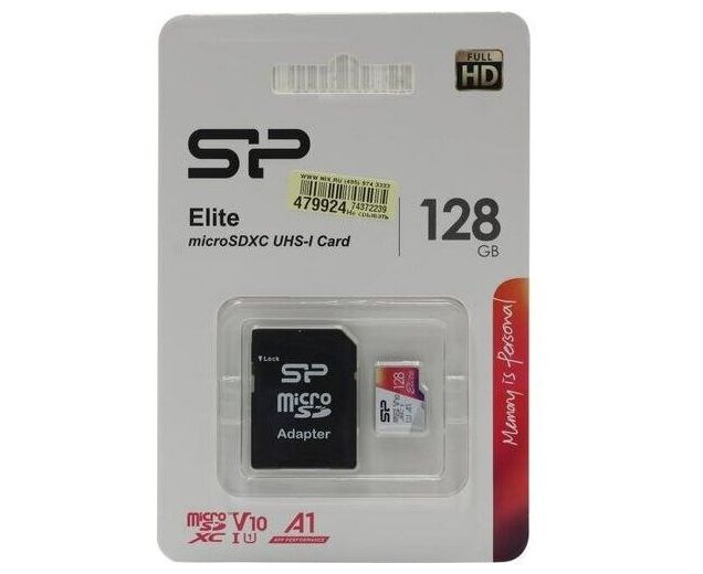 MicroSD 128GB Silicon Power Class 10 Elite UHS-I U1 A1 (R/W 100 Mb/s) + SD адаптер