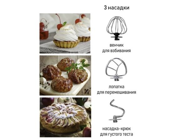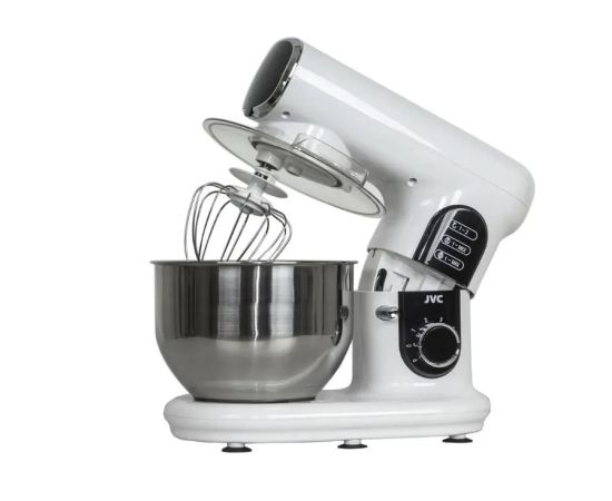 Миксер планетарный с чашей 5 литров из нержавеющей стали JVC JK-MX515 white с импульсным режимом, мощностью 1000 Вт, 3 насадками и 6 скоростями представляет собой современный стационарный домашний миксер для замеса дрожжевого и бездрожжевого теста различной вязкости, взбивания яиц, сливок, кремов и муссов, приготовления пюре. Миксер с чашей JVC имеет планетарную систему смешивания. Это значит, что насадки вращаются вокруг своей оси и по окружности чаши, поэтому тесто или другие ингредиенты будут иметь идеальную консистенцию без комков. Такой чудо-прибор отлично справляется с «тяжелым тестом», поэтому его часто используют в небольших пекарнях и домашних кондитерских.