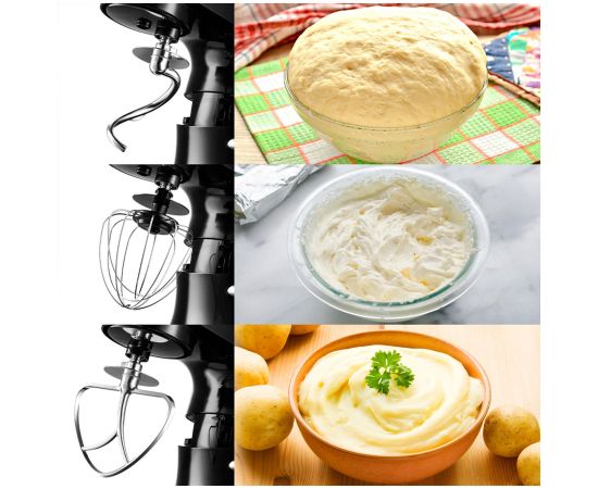 Многофункциональный и мощный планетарный миксер КТ-3061 поможет вам смешать ингредиенты, взбить яичный белок или сливки, приготовить картофельное пюре, соус, замесить тесто, приготовить фарш, смешать ледяной коктейль или смузи.