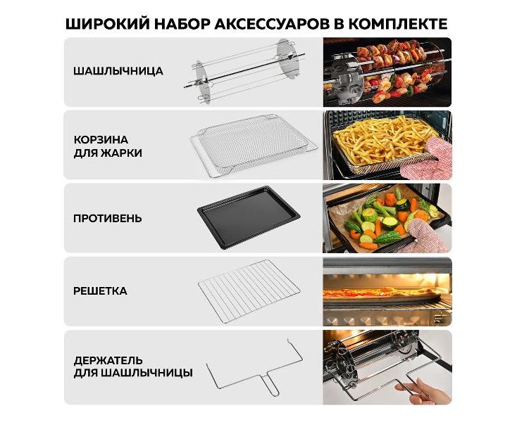 Корзина для фритюра. Шашлычница. Режим "Дегидратор".