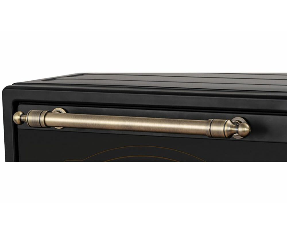 электропечь, металлическая решетка, плоский противень, ухват для противня, круглый противень для пиццы, вертел для гриля, ухват для вертела, насадка для приготовления шашлыка/кебаба, поддон для крошек, гарантийный талон, инструкция на русском языке