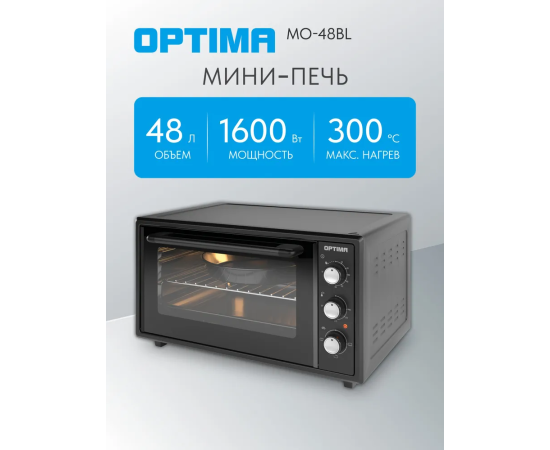 Мини-печь OPTIMA MO-48BL 48л, эмал.внутр.поверх., лампа, таймер, черный 1600Вт