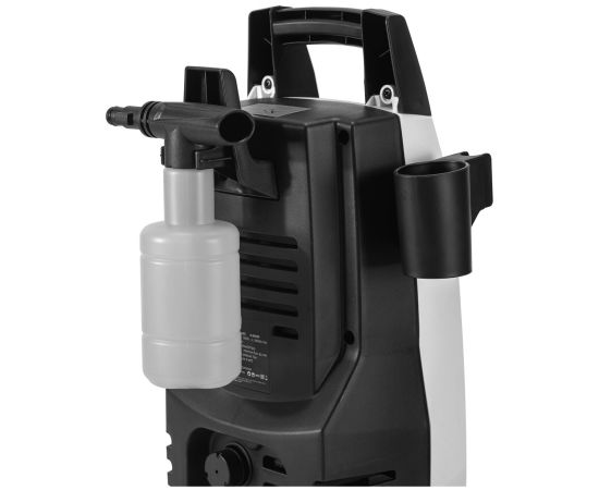 Основной блок с кабелем питания и держателями, набор аксессуаров (в том числе - шланг высокого давления черный, шланг прозрачный, 2 насадки, фильтр, адаптер для шланга, 4 резиновых кольца)