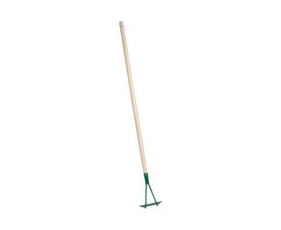 Широкая мотыга с черенком РОСТОК 170х45x1380 мм 421571 пригодится для обработки почвы и ухода за садовыми растениями. С ее помощью можно избавляться от сорняков, окучивать грядки, формировать клумбы.