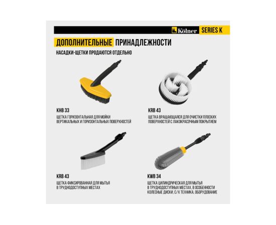 - Крепление для аксессуаров: Позволяет удобно хранить все необходимые аксессуары вместе с мойкой, обеспечивая их доступность и организацию