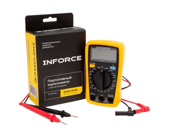 Портативный мультиметр Inforce с тестом батареек 01-05-04 позволяет измерить постоянное и переменное напряжение, постоянный ток и сопротивление.