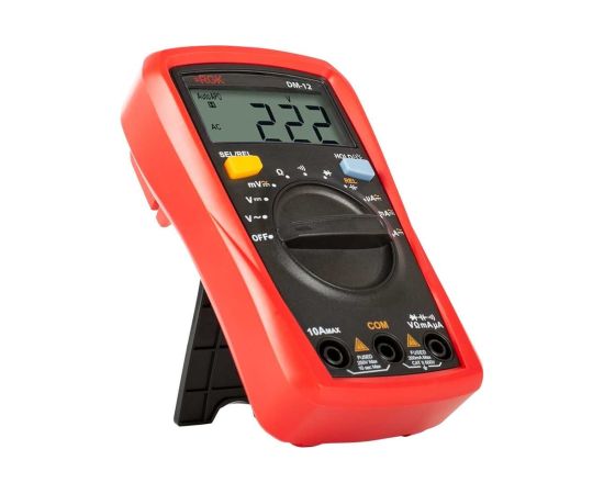 -За счет компактного размера и небольшого веса цифровой мультиметр RGK DM-12 удобно применять для множественных замеров и брать с собой на выездные работы. Встроенная подсветка экрана, облегчающая считывание показаний в темноте, и защищенный корпус позволяют использовать устройство в производственных условиях.