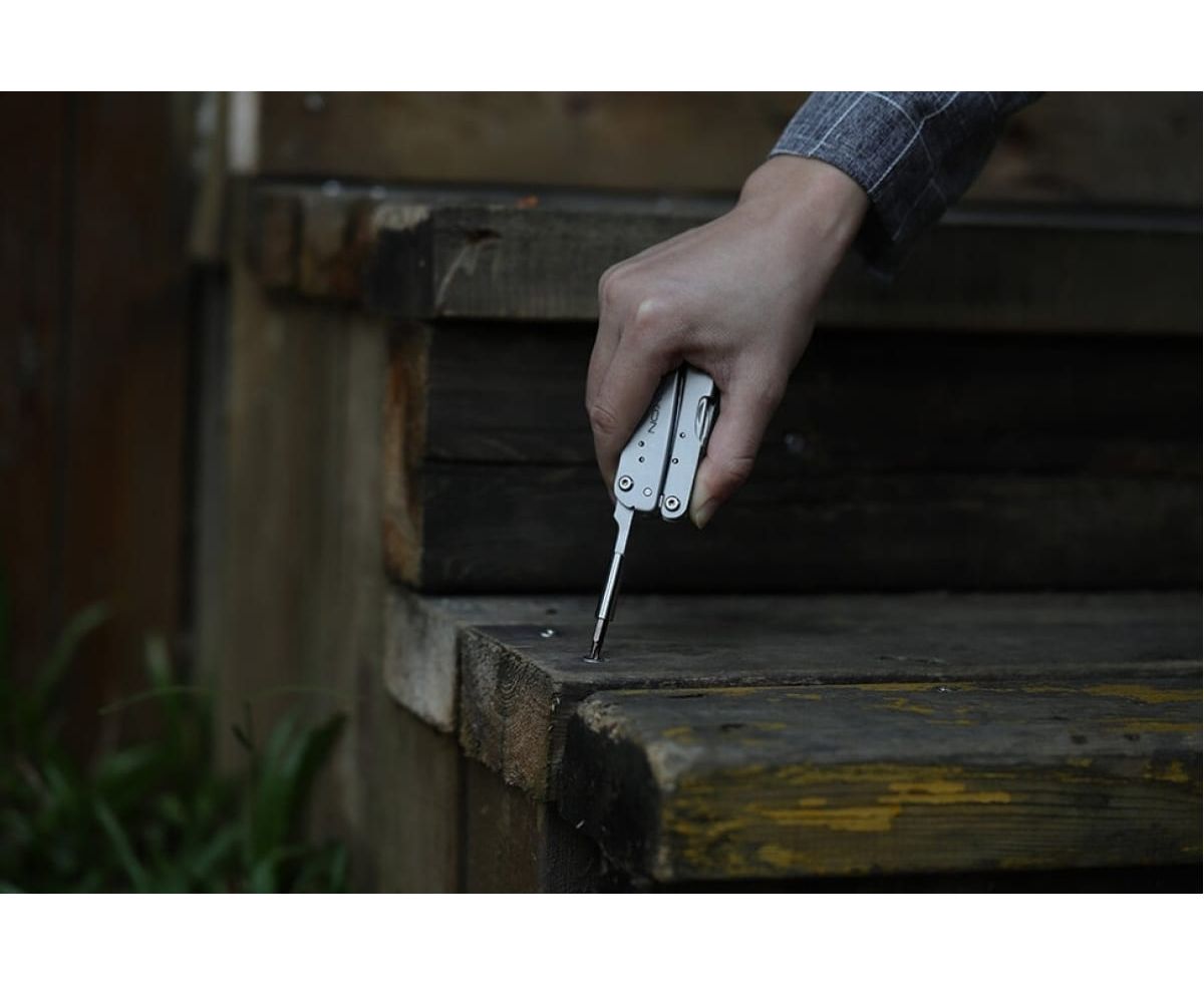 В этом мультиинструменте объединены 14 разных функций. В том числе: пилка для ногтей, отвёртка, плоскогубцы, нож, открывалка для коробок, консервный нож, ножницы, приспособление для разбивания стекла и другие приспособления. С помощью таких удобных орудий вы сможете выполнить множество стандартных операций, с которыми человек чаще всего имеет дело.