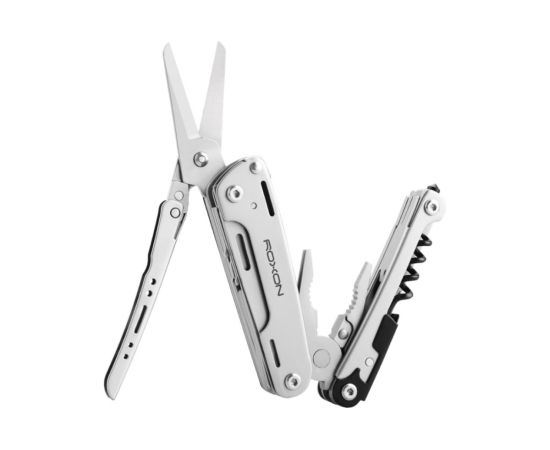 плоскогубцы, кусачки, ножницы, битодержатель, штопор, консервный нож, шило, стропорез, плоская отвертка, нож, стеклобой, напильник, пила