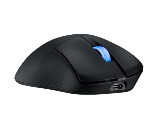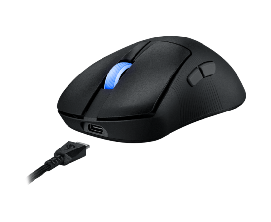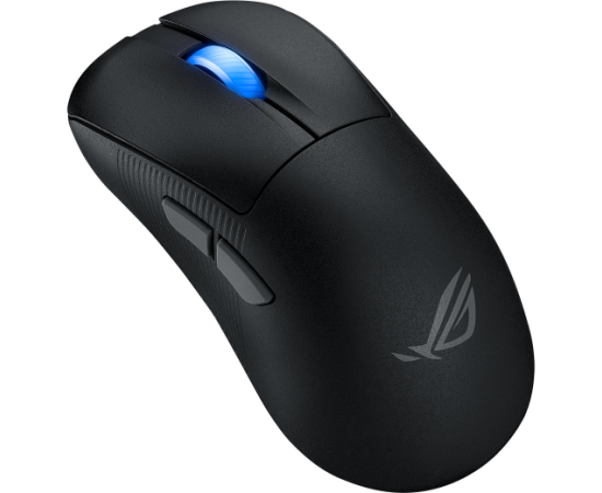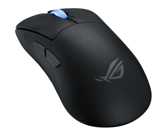 сенсор ROG AimPoint Pro, свичи ROG Optical Micro Switch с ресурсом в 100 млн нажатий, время работы от одного заряда: до 107 часов без подсветки, ресивер ROG Omni позволяет подключать мышь к нескольким устройствам