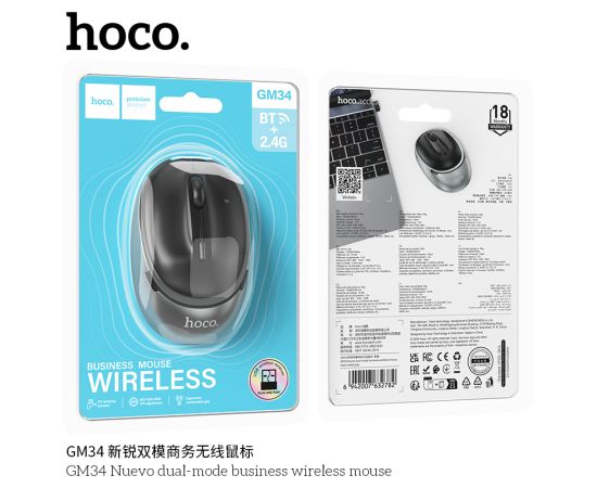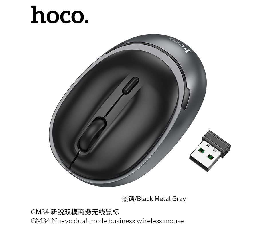 Мышь беспроводная HOCO GM34 Nuevo dual-mode business wireless mouse (черный металлический серый)