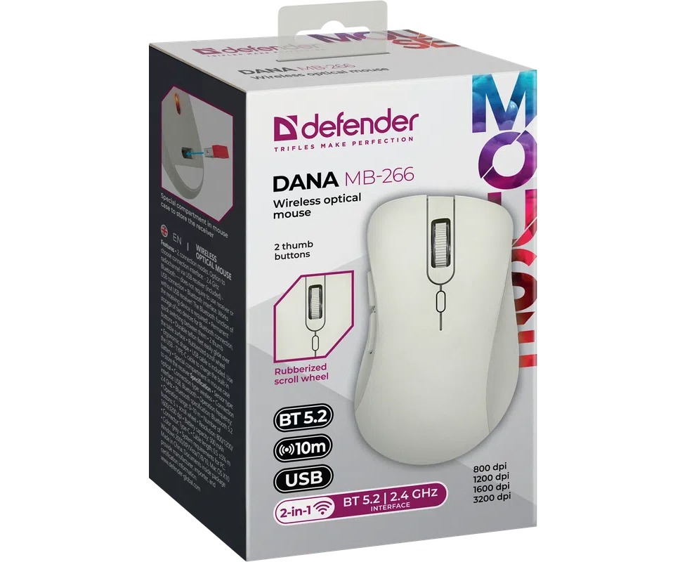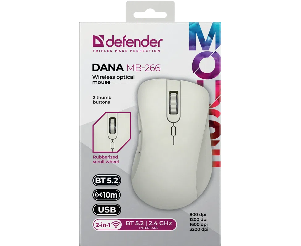 Мышь DEFENDER Dana MB-266 Сер,6кн,2.4G+BT,500мАч,3200dpi (52266)