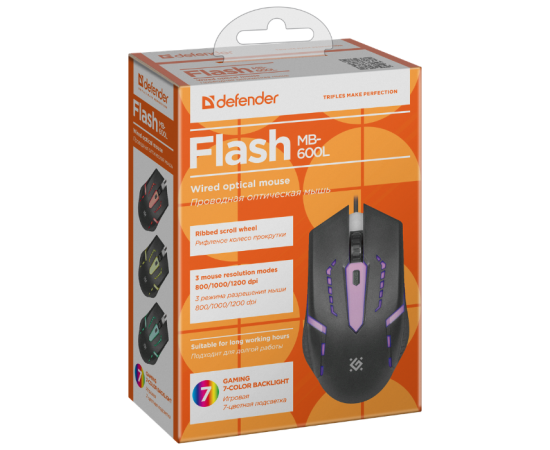 Мышь Defender Flash MB-600L Black, 7 цветов, 4 кн., 1200 dpi, USB
