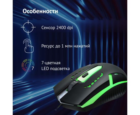 Oklick 398G – это оптическая мышь для геймеров, которые ценят точность и комфорт. Проводное подключение через USB с длиной кабеля 1.9 метра гарантирует надежную связь без задержек. Универсальный дизайн подходит для правой и левой руки, делая мышь комфортной для широкого круга пользователей.