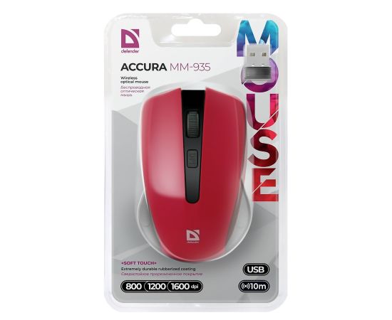Мышь оптическая беспроводная Defender Accura MM-935 (red)(103308)