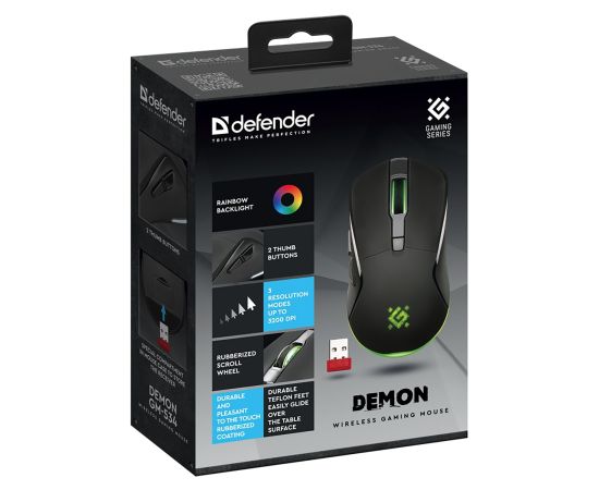 Мышь оптическая беспроводная Defender Demon GM-534 3200dpi,500мАч игровая (black) (238163)