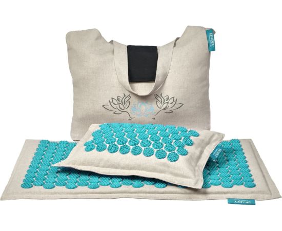 Акупунктурный набор премиум-качества отличается функциональностью и полностью натуральными материалами. Набор включает в себя массажный коврик, подушку и сумку. Цветы жизни – шипы уникальной формы – позволяют сделать массаж более приятным и комфортным, а наличие медицинского сертификата гарантирует эффективность и безопасность.