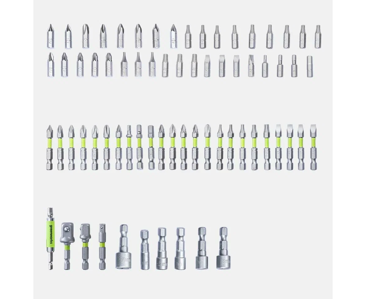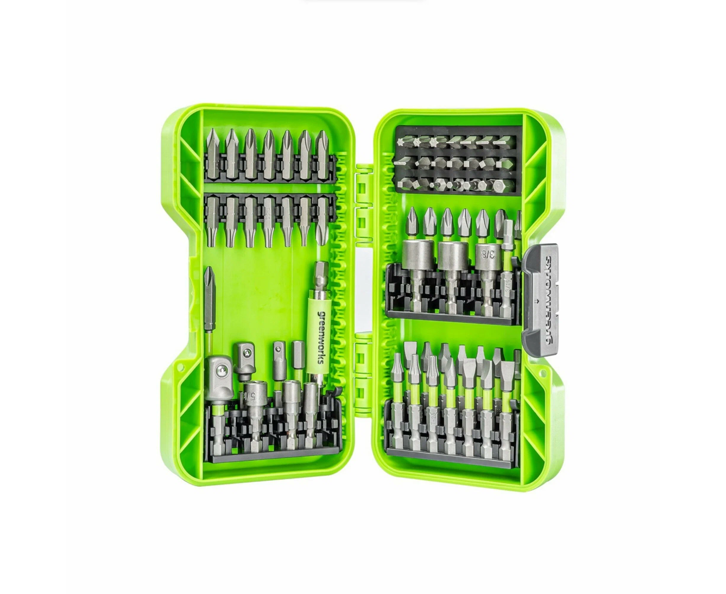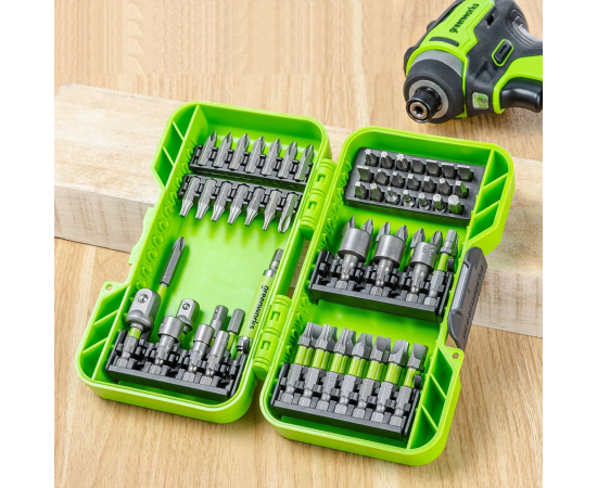 Набор бит, торцевых головок и адаптеров в кейсе Greenworks арт. 2944407, 70 шт.
