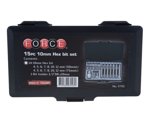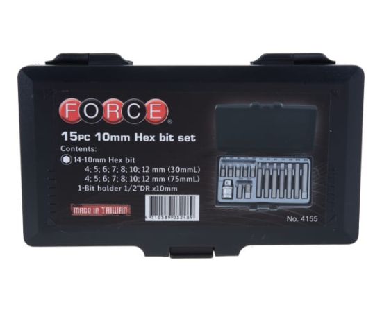 Набор бит-шестигранных FORCE 4155 15пр.4-22mm L-30,75mm 1/2