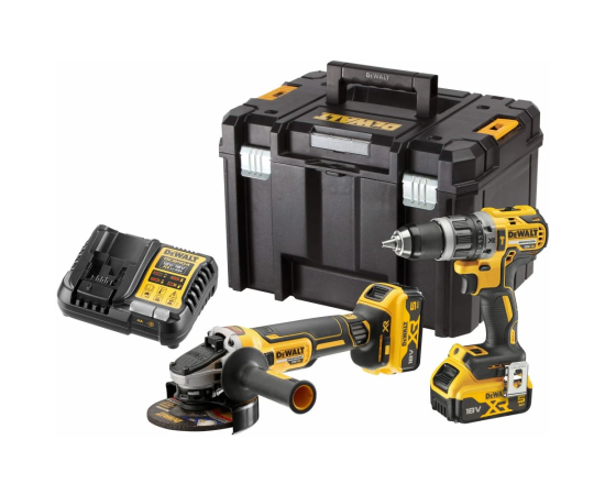 Ударная дрель-шуруповерт DCD796 - 1 шт. УШМ DCG405 - 1 шт. Аккумулятор 5 Ач - 2 шт. Зарядное устройство - 1 шт. Кейс TSTAK - 1 шт.