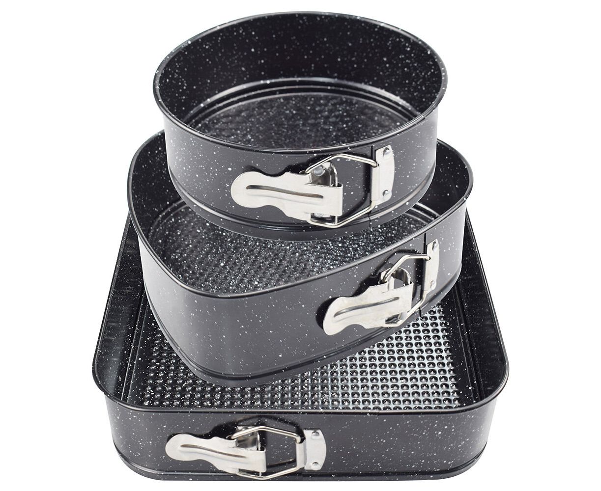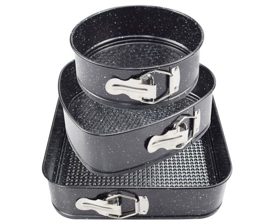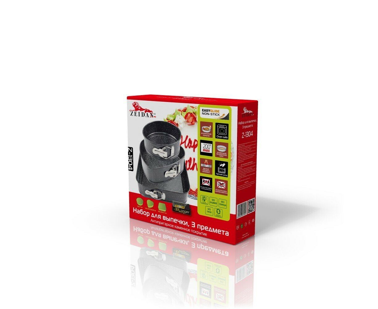 Набор для выпечки ZEIDAN 3 предмета. «Сердце» - 24х23,5х6,8см, «круглая» - ?18х7см, «квадратная» -26х26х7 см, углеродистая сталь, внутреннее И внешнее каменное покрытие «GRANITE», подарочная упаковка.