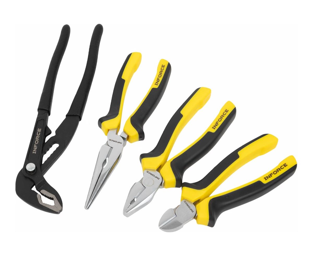 Набор губцевого инструмента Inforce 4 шт 06-25-06 - это профессиональный набор инструмента для слесарных и монтажных работ.